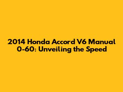 Hey guys! Ever wondered about the raw speed of a 2014 Honda Accord V6 with a manual transmission? You're in luck! We're diving deep into the 0-60 mph acceleration times, giving you the lowdown on what makes this car a true enthusiast's choice. We'll explore the factors that influence its sprint, compare it to its automatic counterpart, and check out what makes the manual version so desirable. Get ready to geek out with us over horsepower, torque, and the joy of shifting gears! This article is all about giving you the best information about the 2014 Honda Accord V6 Manual 0-60.