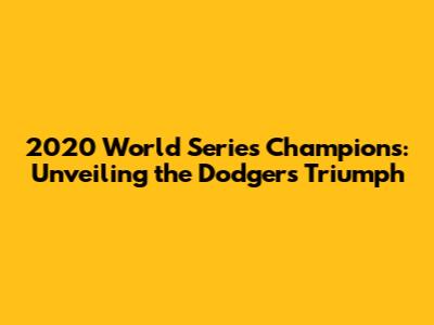 2020 World Series Champions: Unveiling The Dodgers' Triumph