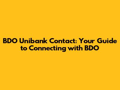BDO Unibank Contact: Get In Touch Easily!