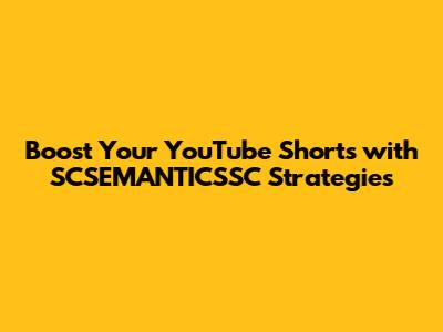 Boost Your YouTube Shorts With SCSEMANTICSSC Strategies