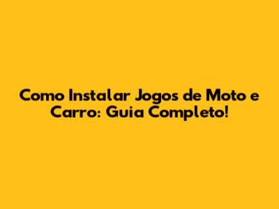 Como Instalar Jogos De Moto E Carro: Guia Completo!