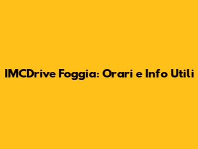 IMCDrive Foggia: Orari E Info Utili