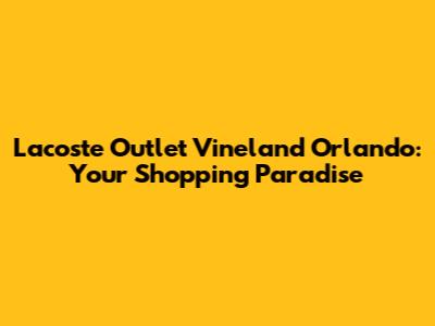 Lacoste Outlet In Vineland, Orlando: Your Ultimate Guide