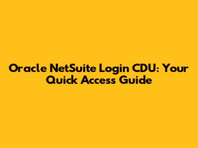 NetSuite Login CDU: Your Quick Access Guide