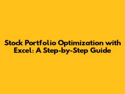 Optimize Your Stock Portfolio With Excel: A Step-by-Step Guide