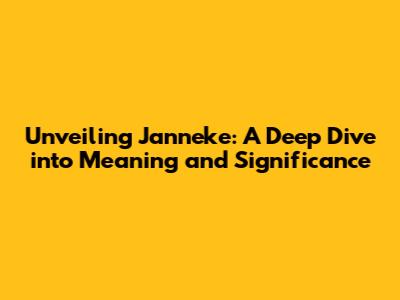Unveiling Janneke: A Deep Dive Into Meaning And Significance