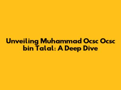 Hey guys! Let's dive into a fascinating figure: Muhammad Ocsc Ocsc bin Talal. This article aims to shed light on this individual, exploring his background, contributions, and any significant aspects of his life. We'll try to provide a comprehensive overview, piecing together information from various sources to paint a clear picture. Buckle up, because we're about to embark on a journey of discovery!