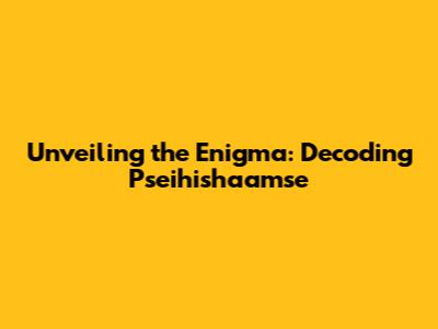 Unveiling The Enigma: Decoding 'Pseihishaamse'